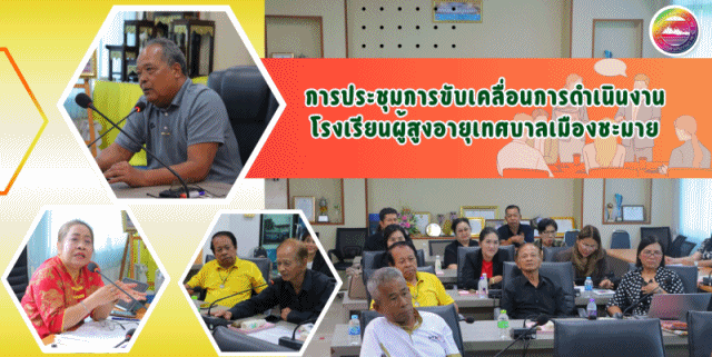 นายประพัฒน์ รักษ์ศรีทอง นายกเทศมนตรีเมืองชะมาย มอบหมายนายวินัย ชาญอาวุธ ที่ปรึกษานายกเทศมนตรีเมืองชะมาย เป็นประธานในการประชุมขับเคลื่อนการดำเนินงานโรงเรียนผู้สูงอายุเทศบาลเมืองชะมาย ซึ่งการประชุมในครั้งนี้ดำเนินการโดย ดร.นาถยา ชัยกิจ รองปลัดเทศบาล พร้อมด้วยงานพัฒนาชุมชน เทศบาลเมืองชะมาย โดยมีนายประเศียร เกื้อสังข์ ประธานศูนย์ชมรมผู้สูงอายุ อ.ทุ่งสง ดร.สุดารัตน์ สุดสมบูรณ์ นักวิชาการอิสระ อาจารย์จากวิทยาลัยเทคโนโลยีภาคใต้ SCT นางณิชาภา ทองคงใหม่ เลขานุการนายก ทม.ชะมาย นายประยูร มากคงแก้ว เลขานุการสมาชิกสภา ทม.ชะมาย นายสุจินต์ แสงเงิน ประธานชมรมผู้สูงอายุ ต.ชะมาย ผู้แทนสมาชิกชมรมผู้สูงอายุ ต.ชะมาย ผู้อำนวยการกองสาธารณสุขและสิ่งแวดล้อม หัวหน้าฝ่ายอำนวยการ และเจ้าหน้าที่ที่เกี่ยวข้องเข้าร่วมการประชุมในครั้งนี้ เพื่อร่วมกันหารือกรอบแนวทางกำหนดรูปแบบการดำเนินงานและหลักสูตรการเรียนรู้ให้ครอบคลุมทั้งมิติสุขภาพ เศรษฐกิจ สังคม สิ่งแวดล้อม เทคโนโลยี เพื่อสุขภาพกายสุขภาพใจที่ดี กรอบแนวทางรูปแบบการรับสมัครที่มีความหลากหลายในการเข้ามาเรียนของผู้สูงอายุ
