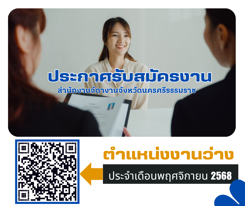 แจ้งตำแหน่งงานว่างจากสำนักงานจัดหางานจังหวัดนครศรีธรรมราช ประจำเดือนพฤศจิกายน 2568 |