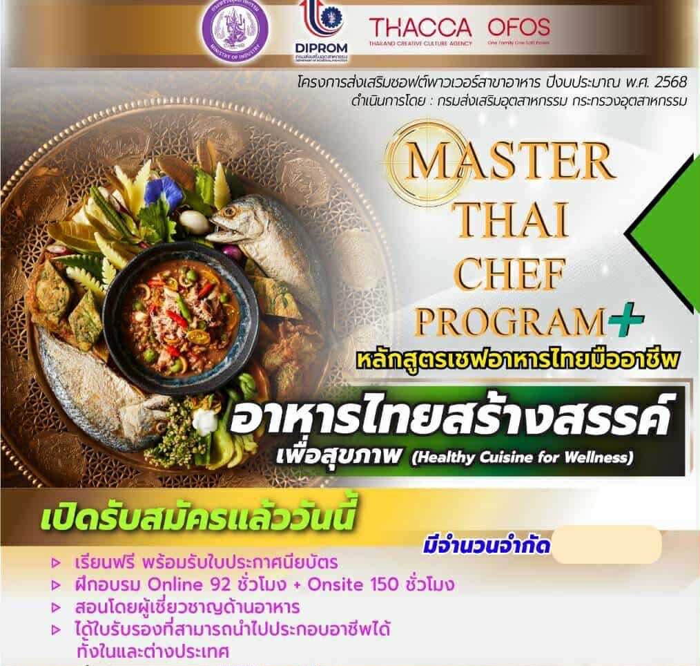 ฟรี ฝึกทักษะ สร้างรายได้ อบรมหลักสูตรเชฟอาหารไทยมืออาชีพ Healthy Cuisine for Wellness อาหารไทยสร้างสรรค์เพื่อสุขภาพ |