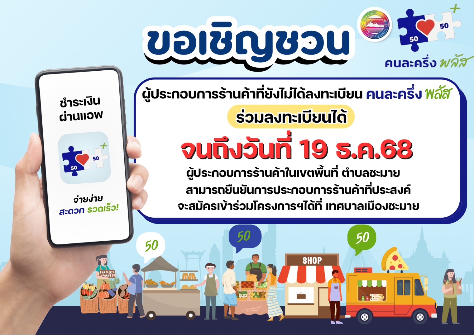 ขอเชิญชวนผู้ประกอบการร้านค้า ที่ยังไม่ได้ลงทะเบียน ร่วมลงทะเบียนคนละครึ่งพลัส |