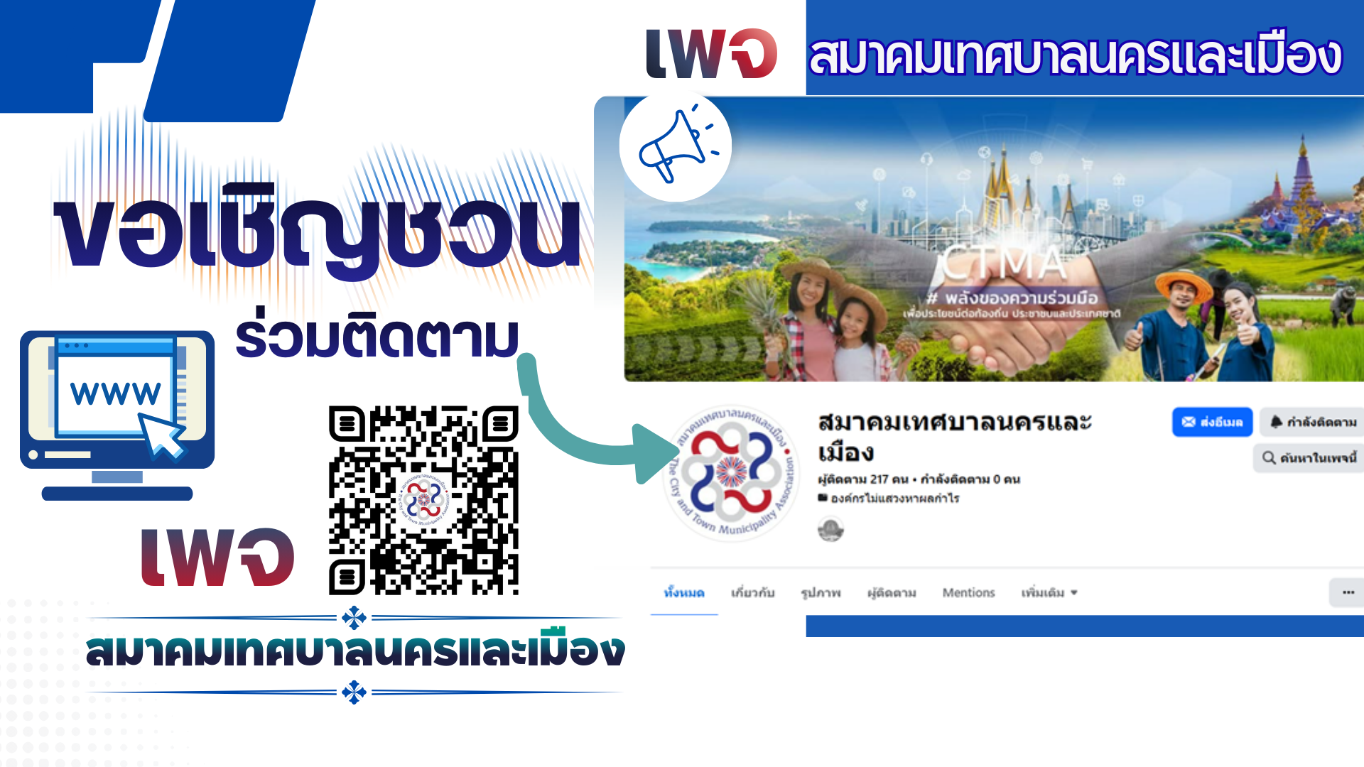 เชิญชวนร่วมติดตามเพจเฟซบุ๊ก สมาคมเทศบาลนครและเมือง |