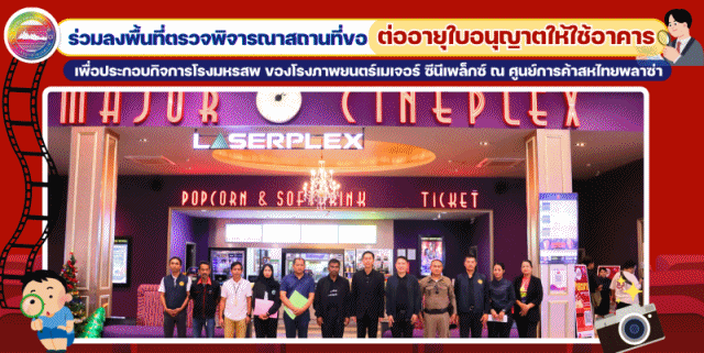 นายประพัฒน์ รักษ์ศรีทอง นายกเทศมนตรีเมืองชะมาย มอบหมายนายชัยยุทธ หอมหวล รองนายกเทศมนตรีเมืองชะมาย และนายอนุสิทธิ์ ทิตทอง ผู้อำนวยการกองช่าง ร่วมติดตามในการลงพื้นที่ตรวจพิจารณาสถานที่ขอต่ออายุใบอนุญาตให้ใช้อาคารเพื่อประกอบกิจการโรงมหรสพของโรงภาพยนตร์เมเจอร์ ซีนีเพล็กซ์ ณ ศูนย์การค้าสหไทยพลาซ่า ทุ่งสง ชั้น 4 หมู่ที่ 2 ตำบลชะมาย อำเภอทุ่งสง จังหวัดนครศรีธรรมราช ซึ่งนำโดยนายวิทยา เขียวรอด รองผู้ว่าราชการจังหวัดนครศรีธรรมราช ซึ่งได้รับมอบหมายจากผู้ว่าราชการจังหวัดนครศรีธรรมราช ในฐานะประธานกรรมการเจ้าพนักงานท้องถิ่น พร้อมด้วย ร.ต.อ.สมนึก แก้วเมือง (คณะกรรมการ), ด.ต.เถลิงศักดิ์ สุทธิ (คณะกรรมการ), นายนิตติพร หนูประกอบ นายช่างโยธาอาวุโส (คณะกรรมการ), นายวรรณรงค์ ทวิช์สังข์ นายช่างโยธาปฏิบัติงาน (คณะกรรมการ), นางสาวกิตติมา สุมาการ นักวิชาการสาธารณสุข สสจ.นศ. การลงพื้นที่ในครั้งนี้เพื่อเป็นการตรวจสอบระบบความปลอดภัย ทั้งด้านอาคารสถานที่ ตรวจสอบทางหนีไฟ, การติดตั้งอุปกรณ์ดับเพลิง, และโครงสร้างอาคารให้เป็นไปตามกฎหมายกำหนด เพื่อใช้ในการพิจารณาคำขอต่ออายุใบอนุญาตให้ใช้อาคารเพื่อประกอบกิจการโรงมหรสพตามที่ได้รับคำร้องยื่นขอต่อใบอนุญาตฯ จากผู้ประกอบกิจการ