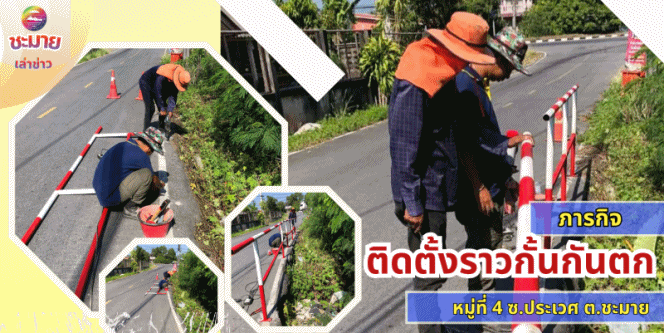 นายประพัฒน์ รักษ์ศรีทอง นายกเทศมนตรีเมืองชะมาย มอบหมายกองช่าง นำโดยนายอนุสิทธิ์ ทิตทอง ผู้อำนวยการกองช่าง ประสานเจ้าหน้าที่กองช่าง ลงพื้นที่ดำเนินงานในการติดตั้งราวกันตกพร้อมทาสี ซอยประเวศ หมู่ที่ 4 ตำบลชะมาย อำเภอทุ่งสง จังหวัดนครศรีธรรมราช เพื่อเป็นการป้องกันอุบัติเหตุจากการสัญจรไปมาของประชาชนในพื้นที่ดังกล่าวให้มีความปลอดภัยสูงสุด