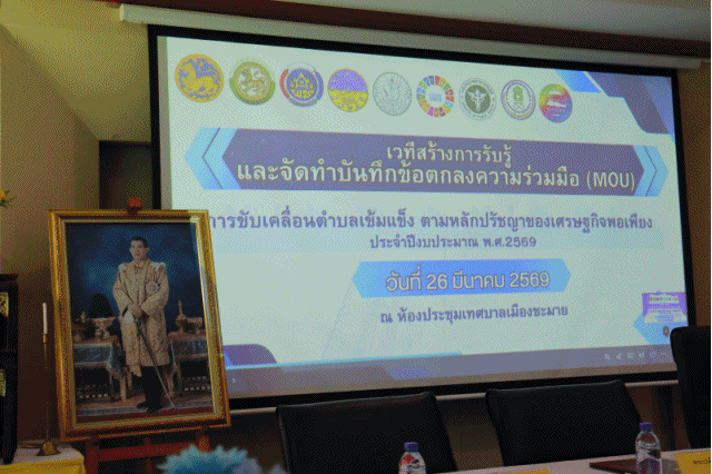 เทศบาลเมืองชะมาย นำโดยนายประพัฒน์ รักษ์ศรีทอง นายกเทศมนตรีเมืองชะมาย พร้อมด้วยนายสุรศักดิ์ รัตนะ รองนายกเทศมนตรีเมืองชะมาย นายอรุณศักดิ์ ชูแก้ว ปลัดเทศบาล นายอภิรักษ์ กระวีพันธ์ นักพัฒนาชุมชนปฏิบัติการ และนายอดุลย์ สมศิริ ผู้ช่วยนักประชาสัมพันธ์ เข้าร่วมเวทีสร้างการรับรู้ และร่วมลงนามในการจัดทำบันทึกข้อตกลงความร่วมมือ (MOU) การขับเคลื่อนตำบลเข้มแข็ง ตามหลักปรัชญาของเศรษฐกิจพอเพียง ประจำปีงบประมาณ พ.ศ.2569 ณ ห้องประชุมเทศบาลเมืองชะมาย โดยมีนายสมคิด กาฬสุวรรณ นายอำเภอทุ่งสง เป็นประธานในพิธี ซึ่งบันทึกความร่วมมือฉบับนี้ทำขึ้นระหว่างอำเภอทุ่งสง โดยนายสมคิด กาฬสุวรรณ นายอำเภอทุ่งสง กับ องค์กรปกครองส่วนท้องถิ่น ส่วนราชการ ผู้นำชุมชน และ 7 ภาคีเครือข่าย โดยทุกฝ่ายตกลงกันในการร่วมมือขับเคลื่อนตำบลชะมายให้เป็นตำบลเข้มแข็งตามหลักปรัชญาของเศรษฐกิจพอเพียง ให้มีขีดความสามารถในการบริหารจัดการ ประชาชนชนมีส่วนร่วมตามหลักประชาธิปไตย มีความมั่นคงปลอดภัยในชีวิตและทรัพย์สิน น้อมนำหลักปรัชญาเศรษฐกิจพอเพียงสู่การปฏิบัติจนเป็นวิถีชีวิต อนุรักษ์ทรัพยากรธรรมชาติและสิ่งแวดล้อม โดยบูรณาการความร่วมมือของ 7 ภาคีเครือข่ายให้มีความเข้มแข็งใน 3 มิติ คือ มิติด้านความมั่นคง มิติด้านความมั่งคั่ง และมิติด้านความยั่งยืน และภายหลังจากการลงนามบันทึกข้อตกลงความร่วมือ (MOU) ดำเนินการเรียบร้อยแล้วนั้น ท่านนายกประพัฒน์ รักษ์ศรีทอง นายกเทศมนตรีเมืองชะมาย ได้กล่าวประกาศวาระตำบลเข้มแข็งตามหลัปรัชญาของเศรษฐกิจพอเพียง ประจำปีงบประมาณ พ.ศ.2569 ของตำบลชะมาย เพื่อประกาศเจตนารมณ์ในการขับเคลื่อนตำบลชะมายให้เป็นตำบลเข้มแข็งตามหลักปรัชญาเศรษฐกิจพอเพียง โดยจะดำเนินการให้บรรลุเป้าหมาย ภายในปีงบประมาณ พ.ศ.2569 นี้