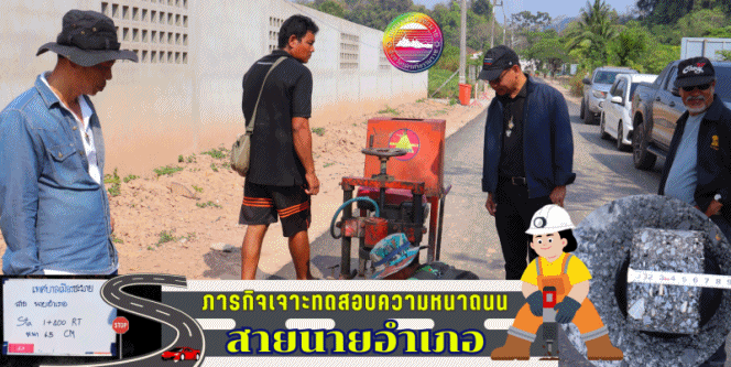 ดำเนินการเจาะทดสอบความหนาของถนนตามโครงการปรับปรุงถนนลาดยางแบบ Asphaltic Concrete ถนนสายนายอำเภอ หมู่ที่ 1,6,8 ตำบลชะมา�