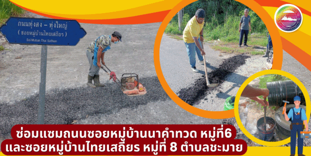 การซ่อมแซมถนนชำรุดซอยบ้านนาคำทวด หมู่ที่ 6 และซอยหมู่บ้านไทยเสถียร หมู่ที่ 8 ต.ชะมาย...