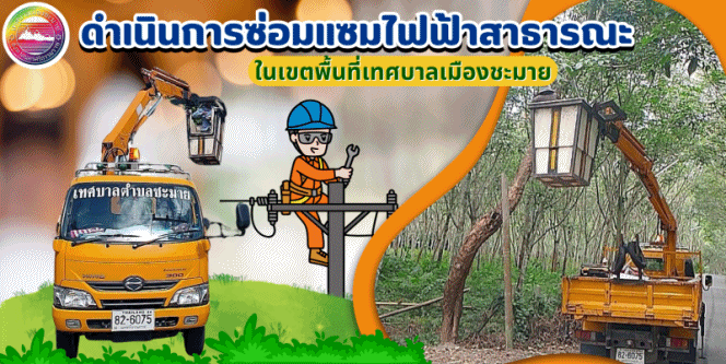 ภารกิจการซ่อมแซมไฟฟ้าสาธารณะดับในเขตพื้นที่เทศบาลเมืองชะมาย...
