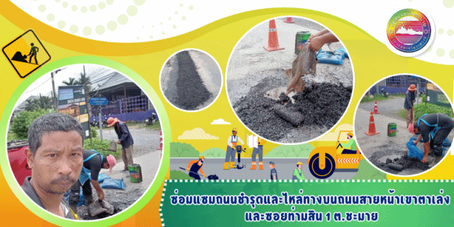 นายประพัฒน์ รักษ์ศรีทอง นายกเทศมนตรีเมืองชะมาย มอบหมายกองช่าง นำโดยนายอนุสิทธิ์ ทิตทอง ผู้อำนวยการกองช่าง ประสานเจ้าหน้าที่ลงพื้นที่ซ่อมแซมถนนและไหล่ทางที่ชำรุดถนนสายหน้าเขาตาเล่ง และถนนซอยท่ามสิน 1 หมู่ที่ 1 และหมู่ที่ 8 ตำบลชะมาย อำเภอทุ่งสง จังหวัดนครศรีธรรมราช