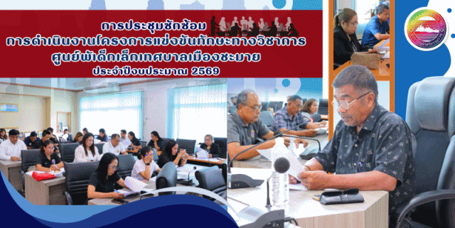 นายประพัฒน์ รักษ์ศรีทอง นายกเทศมนตรีเมืองชะมาย มอบหมายนายชัยยุทธ หอมหวล รองนายกเทศมนตรีเมืองชะมาย เป็นประธานในการประชุมซักซ้อมการจัดกิจกรรมโครงการแข่งขันทักษะทางวิชการ ศูนย์พัฒนาเด็กเล็กเทศบาลเมืองชะมาย ประจำปีงบประมาณ 2569 ณ ห้องประชุมเทศบาลเมืองชะมาย โดยมีนายสุรศักดิ์ รัตนะ รองนายกเทศมนตรีเมืองชะมาย, นายวิโรจน์ เรืองบุรี เลขานุการนายก ทม.เมืองชะมาย, นางณิชาภา ทองคงใหม่ เลขานุการนายก ทม.เมืองชะมาย, นายวินัย ชาญอาวุธ ที่ปรึกษานายก ทม.เมืองชะมาย, นายอรุณศักดิ์ ชูแก้ว ปลัดเทศบาล, นางสาวนาถยา ชัยกิจ รองปลัดเทศบาล, หัวหน้าสำนักปลัดเทศบาล, ผู้อำนวยการกอง ตลอดถึงคณะกรรมการดำเนินงานโครงการฯ ตามคำสั่งเทศบาลจากฝ่ายต่างๆ เข้าร่วมในการประชุมในครั้งนี้ เพื่อชี้แจง ทำความเข้าใจ และซักซ้อมแนวทางปฏิบัติงานตามโครงการที่ได้วางร่วมกันไว้ ให้ทุกฝ่ายที่เกี่ยวข้องได้เข้าใจบทบาทหน้าที่ วัตถุประสงค์ กำหนดการ และวิธีการทำงานในแต่ละขั้นตอนของโครงการ ให้การดำเนินงานโครงการเป็นไปอย่างราบรื่น มีประสิทธิภาพ และบรรลุเป้าหมายเดียวกัน