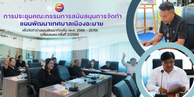 ดำเนินการประชุมเพื่อพิจารณาการจัดทำร่างแผนพัฒนาท้องถิ่น (พ.ศ.2566-2570) เปลี่ยนแปลง ครั้งที่ 2/2569 และพิจารณาเหตุผลความจำเป็นในการเปลี่ยนแปลง แผนพัฒนาท้องถิ่น (พ.ศ.2566-2570) ครั้งที่ 2/2569 เพื่อนำเสนอต่อที่ประชุมคณะกรรมการพัฒนาเทศบาลเมืองชะมาย ได้พิจารณาให้ความเห็นชอบ ต่อไป