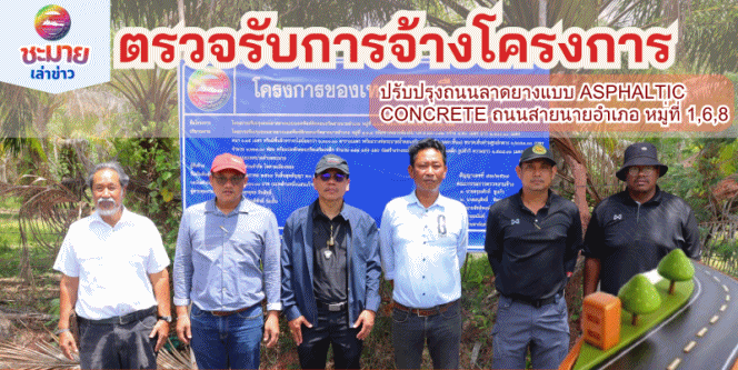 นายประพัฒน์ รักษ์ศรีทอง นายกเทศมนตรีเมืองชะมาย มอบหมายให้คณะกรรมการตรวจรับงานจ้าง นำโดยนายอรุณศักดิ์ ชูแก้ว ปลัดเทศบาล (ประธานกรรมการ) พร้อมด้วยนายอนุสิทธิ์ ทิตทอง ผู้อำนวยการกองช่าง (กรรมการ), นายสิทธิพงษ์ ด้วงช่วย หัวหน้าฝ่ายบริหารงานทั่วไป (กรรมการ) และตัวแทนประชาคมหมู่บ้าน, ผู้ควบคุมงาน และผู้ควบคุมงานผู้รับจ้าง ร่วมกันดำเนินการตรวจรับการจ้างปรับปรุงถนนลาดยางแบบแอสฟัลท์ติกคอนกรีตสายนายอำเภอ หมู่ที่ 1,6,8 ระยะทาง 1,400 เมตร พร้อมวางท่อระบายน้ำคอนกรีตเสริมเหล็ก จำนวน 1,663 ท่อน และบ่อพักคอนกรีตเสริมเหล็ก จำนวน 184 แห่ง งบประมาณ 8,190,000.- บาท