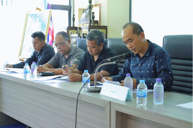 นายประพัฒน์ รักษ์ศรีทอง นายกเทศมนตรีเมืองชะมาย ประธานการประชุมคณะกรรมการพัฒนาเทศบาลเมืองชะมาย และประชาคมตำบลชะมาย พร้อมด้วยคณะกรรมการฯ