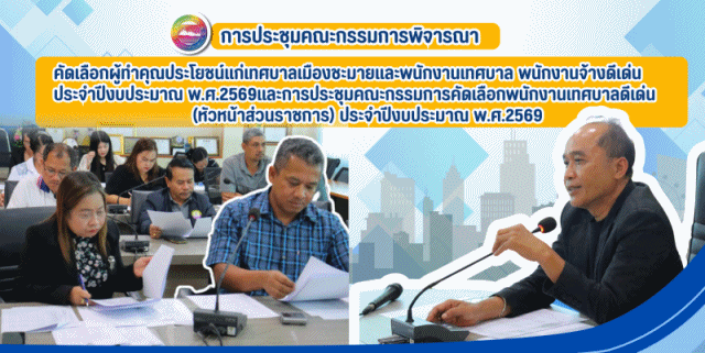 นายประพัฒน์ รักษ์ศรีทอง นายกเทศมนตรีเมืองชะมาย เป็นประธานในการประชุมคณะกรรมการพิจารณาคัดเลือกผู้ทำคุณประโยชน์แก่เทศบาลเมืองชะมายและพนักงานเทศบาล พนักงานจ้างดีเด่น ประจำปีงบประมาณ พ.ศ.2569 โดยมีปลัดเทศบาล รองปลัดเทศบาล ผู้อำนวยการกอง หัวหน้าฝ่ายอำนวยการ และนักทรัพยากรบุคคลปฏิบัติการ ในฐานะกรรมการเข้าร่วมในการประชุมเพื่อพิจารณาคัดเลือกบุคคลภายนอก หน่วยงานราชการ ผู้ประกอบการ ผู้ทำคุณประโยชน์แก่เทศบาลเมืองชะมาย พนักงานเทศบาล และพนักงานจ้างดีเด่น ผู้มีคุณธรรม จริยธรรมในการปฏิบัติราชการที่ได้รับการยกย่องเชิดชูเกียรติ ทั้งนี้ภายหลังจากการประชุมของคณะกรรมฯ ชุดแรกพิจารณาแล้วเสร็จ สำนักปลัดเทศบาลได้ดำเนินการประชุมต่อเนื่องในส่วนของคณะกรรมฯ ที่ 2 ซึ่งเป็นการประชุมคณะกรรมการคัดเลือกพนักงานเทศบาลดีเด่น (หัวหน้าส่วนราชการ) ประจำปีงบประมาณ พ.ศ.2569 โดยมีนายสุรศักดิ์ รัตนะ รองนายกเทศมนตรีเมืองชะมาย เป็นประธานในการประชุมพิจารณาฯ พร้อมด้วยคณะกรรมฯ ตามคำสั่งแต่งตั้ง ประกอบด้วย นายประสงค์ พรหมวันรัตน์ รองนายกเทศมนตรีเมืองชะมาย ปลัดเทศบาล รองปลัดเทศบาล หัวหน้าฝ่ายอำนวยการ และนักทรัพยากรบุคคลปฏิบัติการ โดยคณะกรรมการชุดนี้ได้ร่วมกันพิจารณาคัดเลือกพนักงานเทศบาลดีเด่น ในส่วนของหัวหน้าส่วนราชการ ผู้ที่มีคุณธรรมจริยธรรมในการปฏิบัติราชการที่ได้รับการยกย่องเชิดชูเกียรติ ซึ่งการประชุมของคณะกรรมการฯ ทั้งสองชุดดำเนินการเป็นไปด้วยความเรียบร้อยตามวาระกำหนด