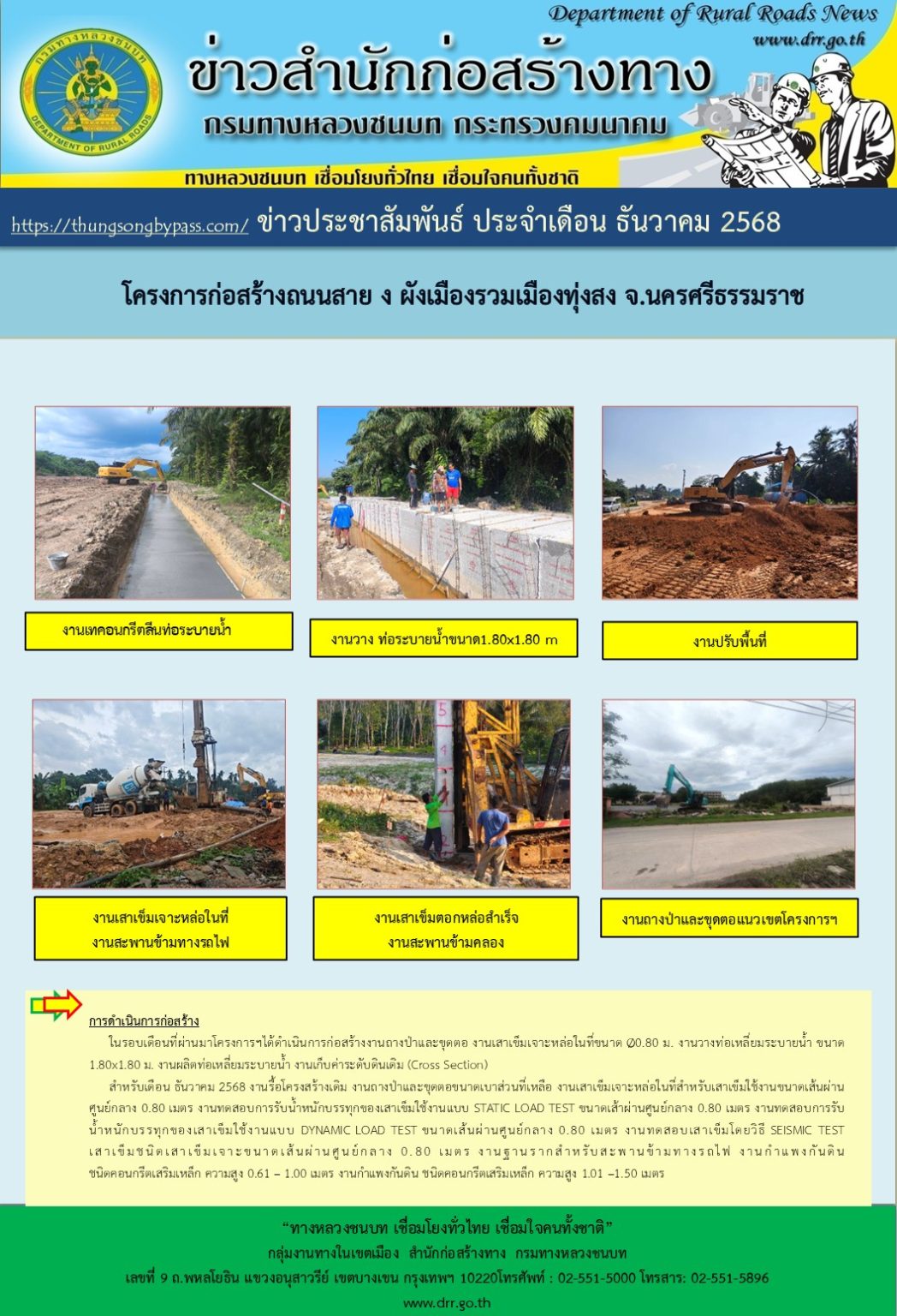 ประชาสัมพันธ์ความก้าวหน้าการดำเนินงานก่อสร้าง โครงการก่อสร้างถนนสาย ง ผังเมืองรวมเมืองทุ่งสง จ.นครศรีธรรมราช |