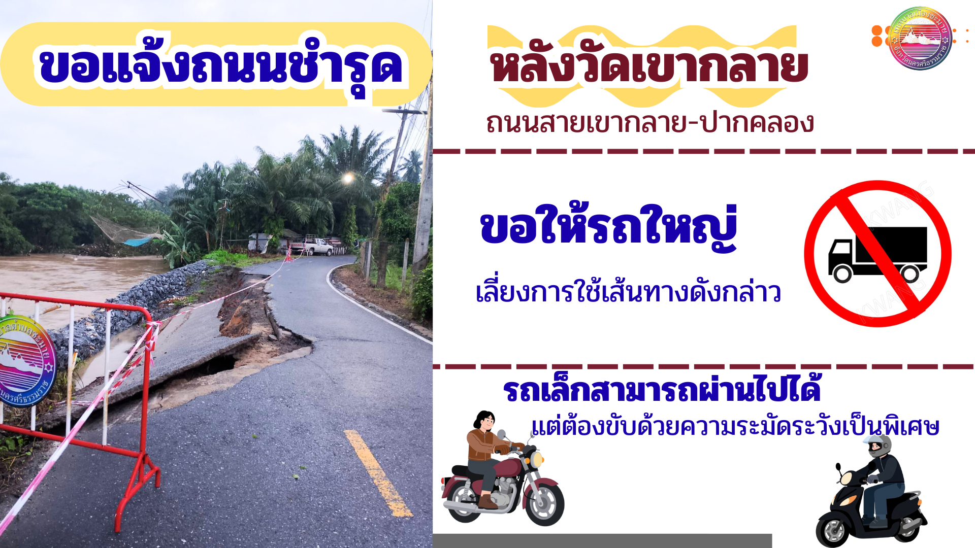 แจ้งถนนชำรุดถนนสายเขากลาย-ปากคลอง |