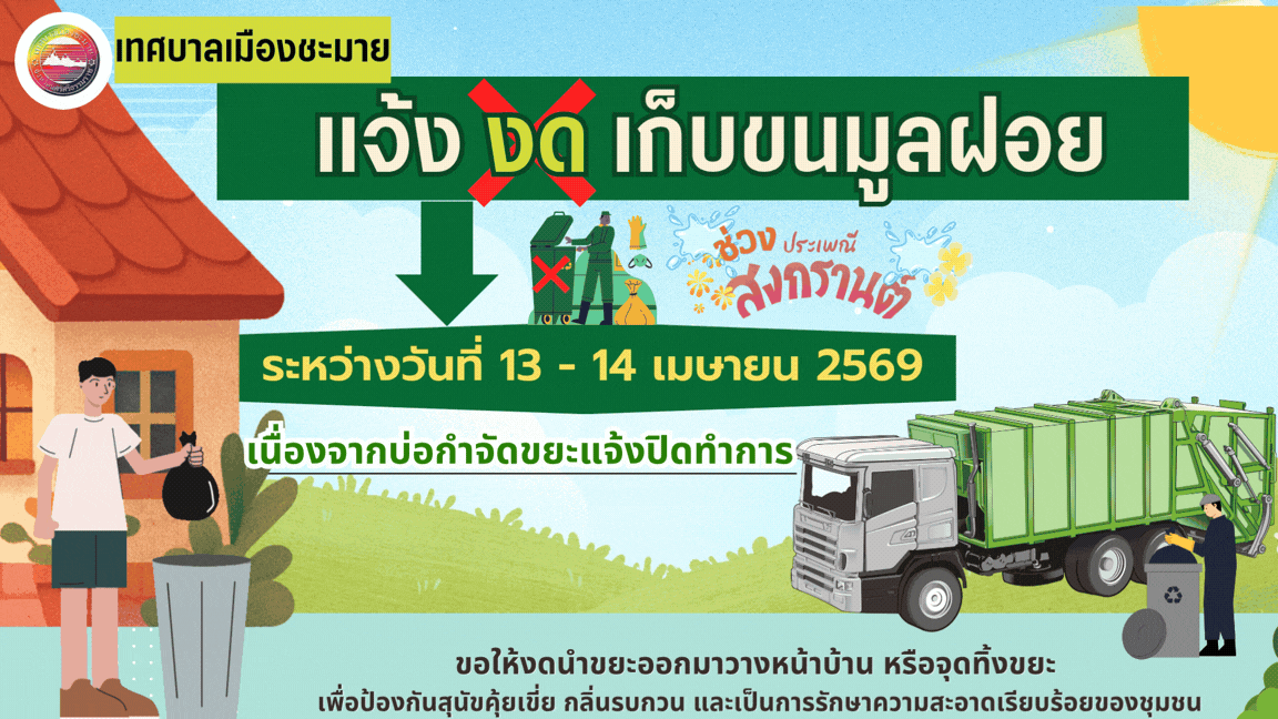 จ้งงดเก็บขนมูลฝอย ในพื้นที่ตำบลชะมาย ช่วงเทศกาลวันสงกรานต์ |